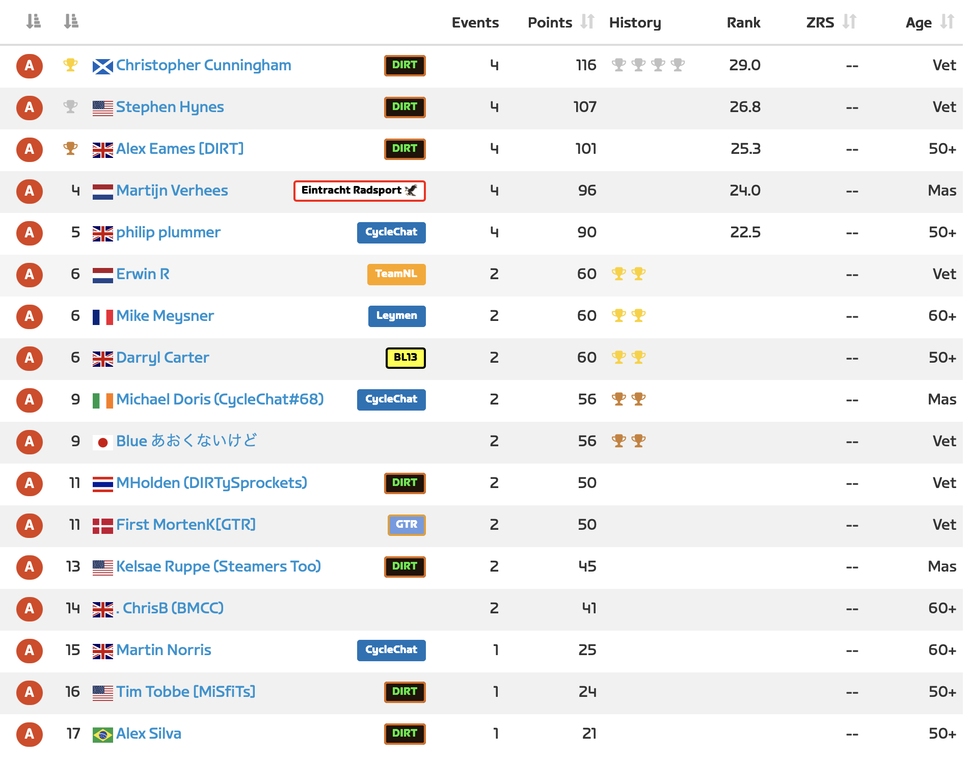 As you can see, it is important to do both races if you want to do well in the League. The points are simple. 30 for win and decrementing by 1 for each place. If we get more than 30 people I will increase it for all events in the month so that the scoring is fair.